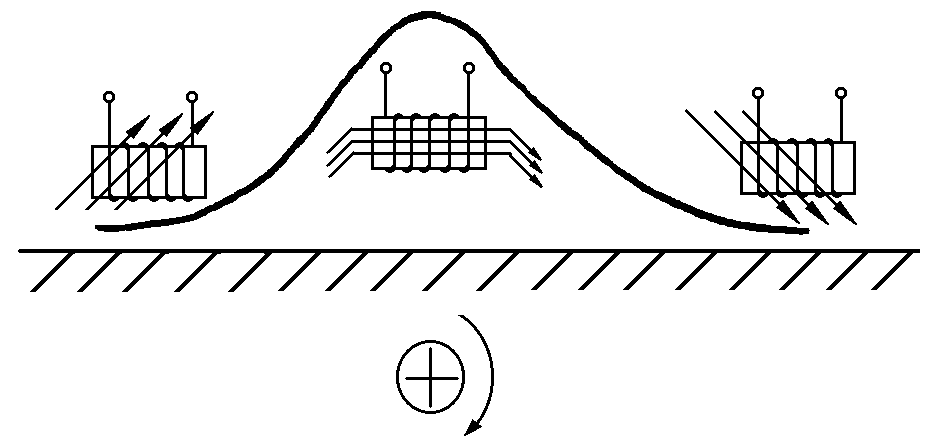 如圖6.7,使磁棒線圈軸線平行于地面,做慢慢移動(dòng),在線圈位于電纜正上方時(shí),耳機(jī)中聽到的聲響最大。此時(shí)穿過線圈的磁力線最多。然后將磁棒先后向兩側(cè)慢慢移動(dòng),穿過線圈的磁力線逐漸減少,響聲逐漸減弱。在電纜附近,聲響與其位置關(guān)系形成一鐘形曲線,曲線的峰頂所對應(yīng)的測試位置即電纜所經(jīng)過的路徑。